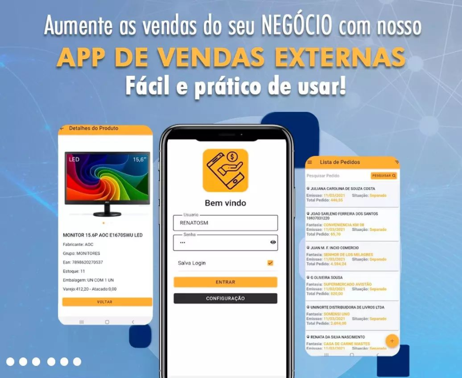 A Interage Sistemas desenvolveu o moderno e prático APLICATIVO DE VENDA EXTERNA, disponível para a plataforma Android com o objetivo de possibilitar a realização de pedidos de seus clientes de forma online, ou seja, de qualquer lugar que desejar, bastando